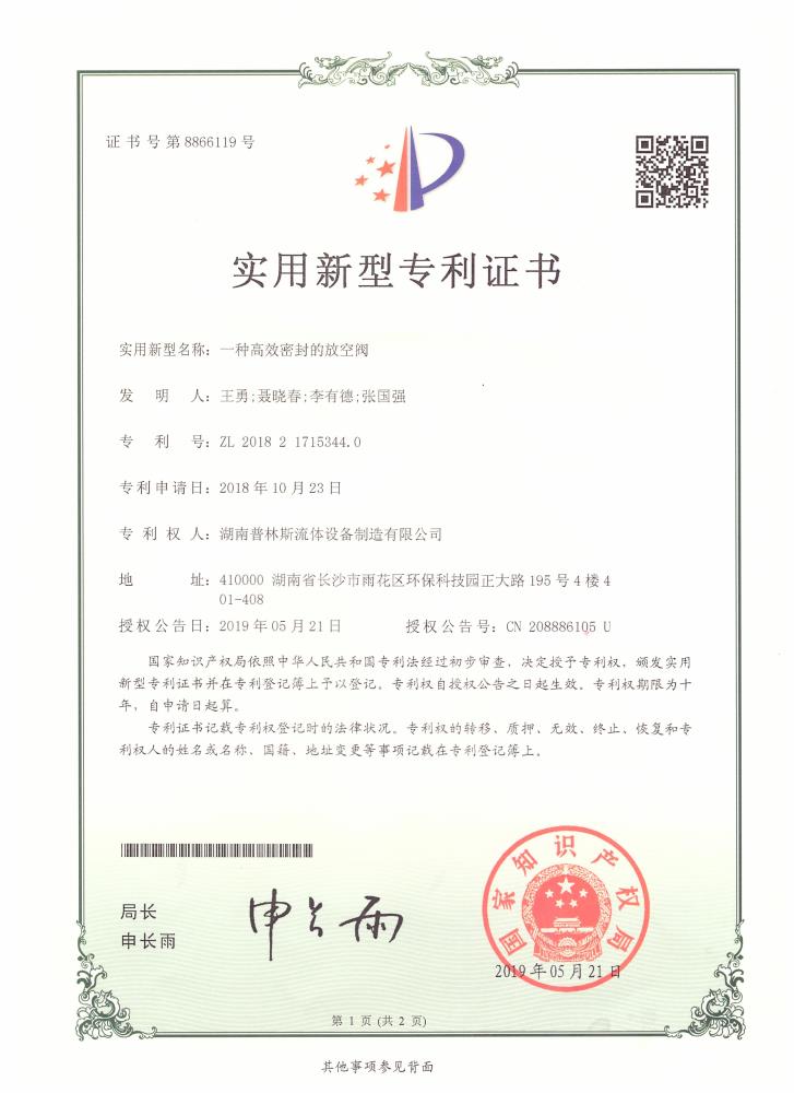 實(shí)用新型專(zhuān)利證書(shū)